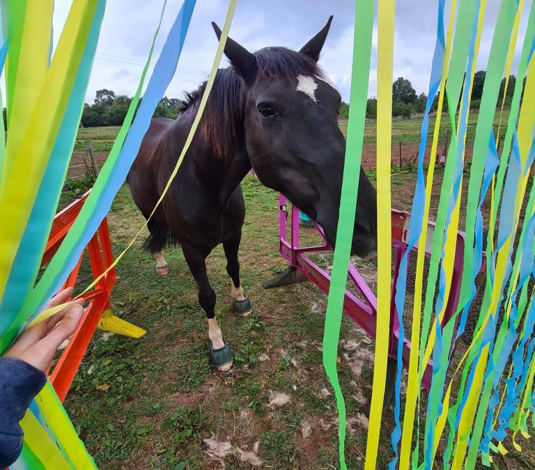 I started to learn the basics to see what, if anything I could teach Voodoo using positive reinforcement. The world that opened up to us was just incredible and although Voodoo was diagnosed with Kissing spine and facet joint arthritis, it didn’t stop us from having the most fun learning how to walk through a scary fly curtain, line up at a mounting block on voice cue, pick up a hula hoop and bring it to me and just dance together.