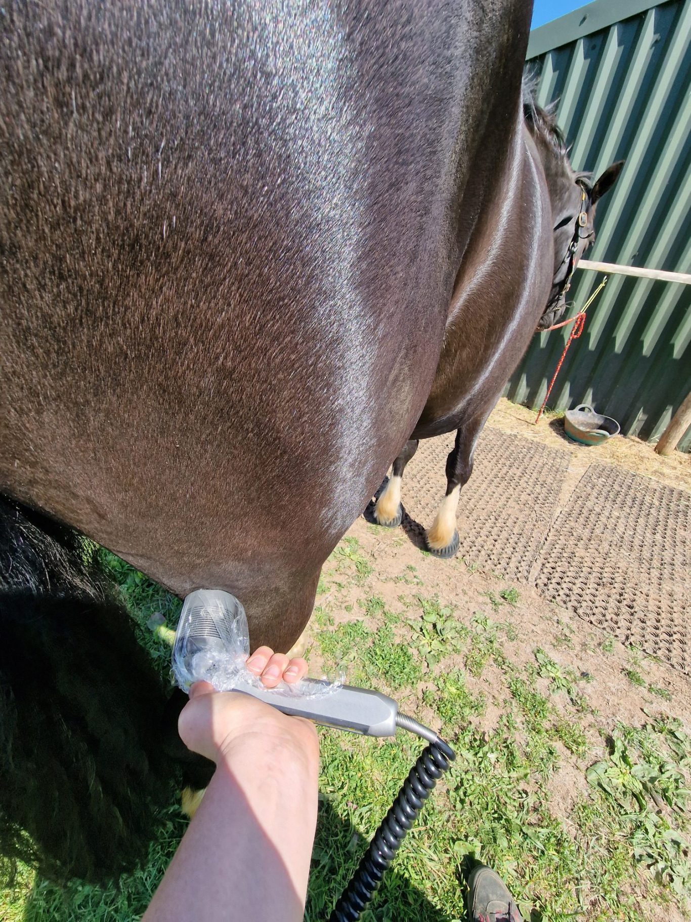 Kinesiology taping is a therapeutic technique that involves the application of specialized elastic tape to the animal's coat. Kinesiology tape can provide a variety of benefits to help support and enhance an animal's recovery and performance.